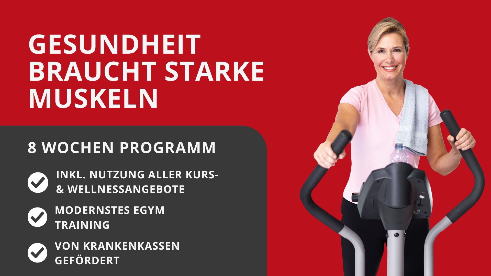 Gesund, fit und selbstbestimmt älter werden und einen Alltag leben, der dir so richtig Freude macht! Und das ist auch das Ziel unserer Initiative „Gesundheit braucht starke Muskeln“. Wir unterstützen dich mit individuellen Trainingsplänen, kompetenter Betreuung, Motivation und vielen Tipps im Bereich Ernährung.
